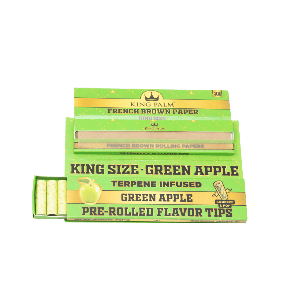 Every pack of King size Green Apple brown rolling papers comes with 32 leaves and 16 delicious pre-rolled flavored filter tips. The tips contain the flavor, and you decide when to release it with a simple Squeeze & Pop.