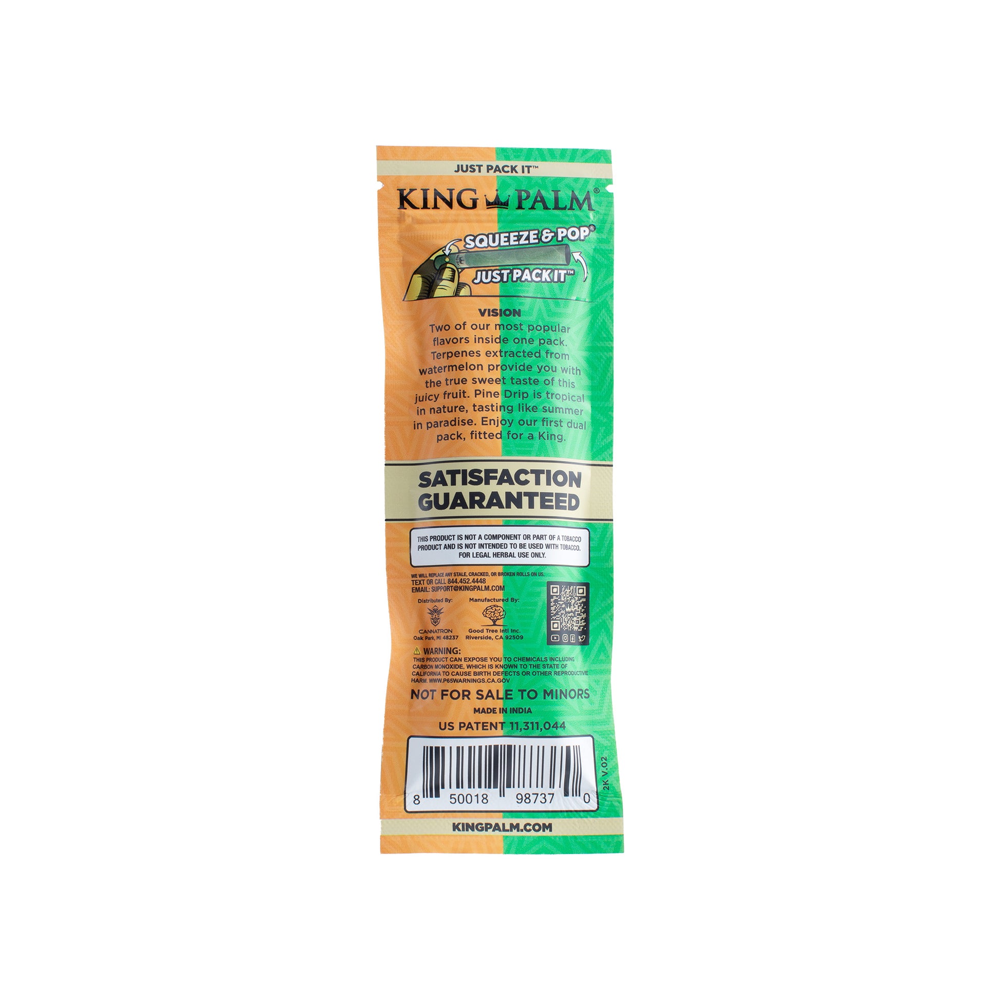 We start with premium, individually selected, and hand-harvested Cordia palm leaves. Each leaf is hand-rolled to the perfect size, then immediately sealed to protect the freshness that you count on from King Palm. Then the king-size cones are flavored and given a flavored filter tip as well. Squeeze & pop to let the flavor flow!