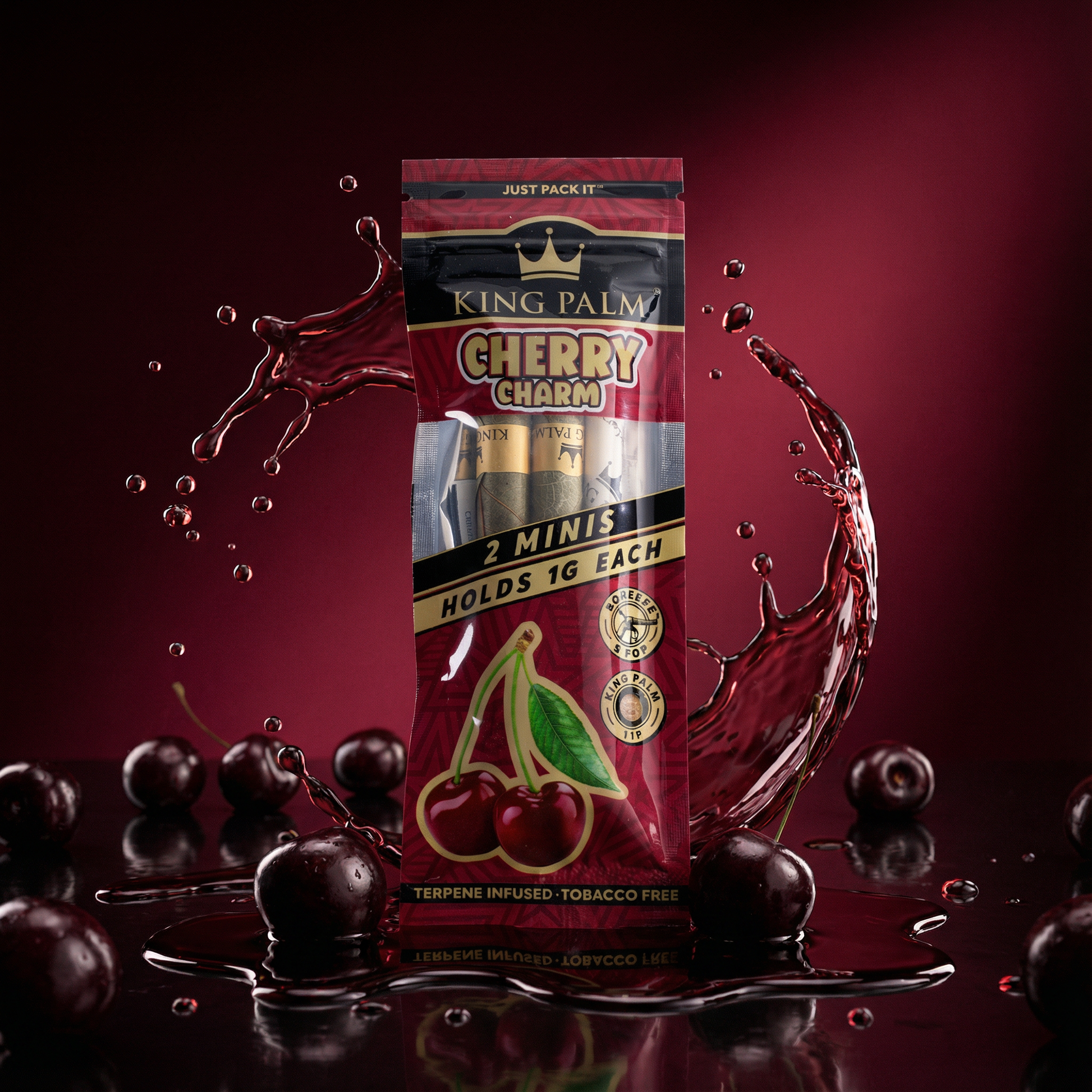 Experience the bold, fruity taste of King Palm's Cherry Charm Mini Rolls. Infused with sweet cherry flavor and designed for effortless enjoyment, they’re perfect for any session.