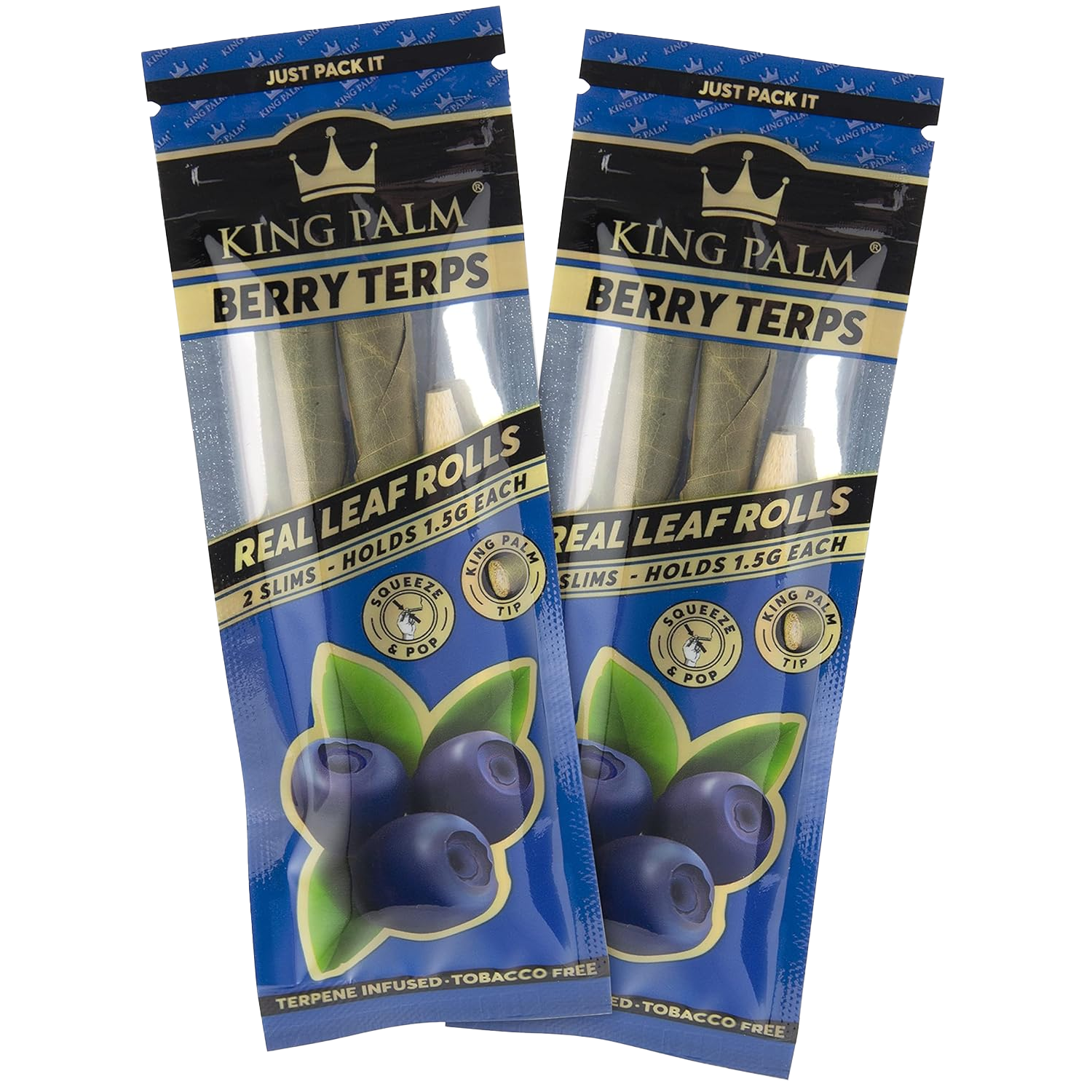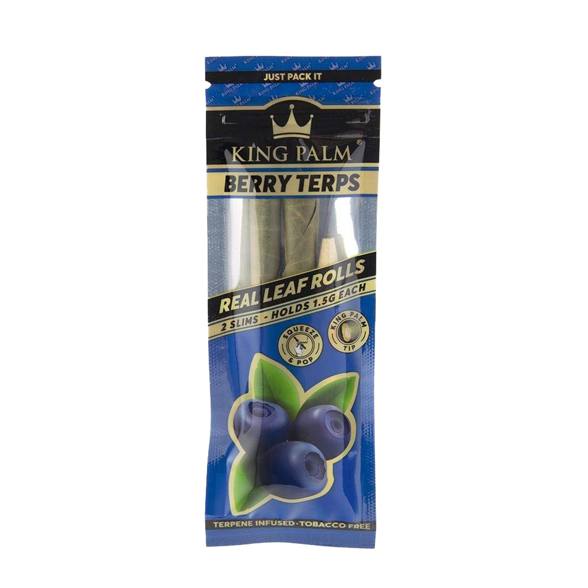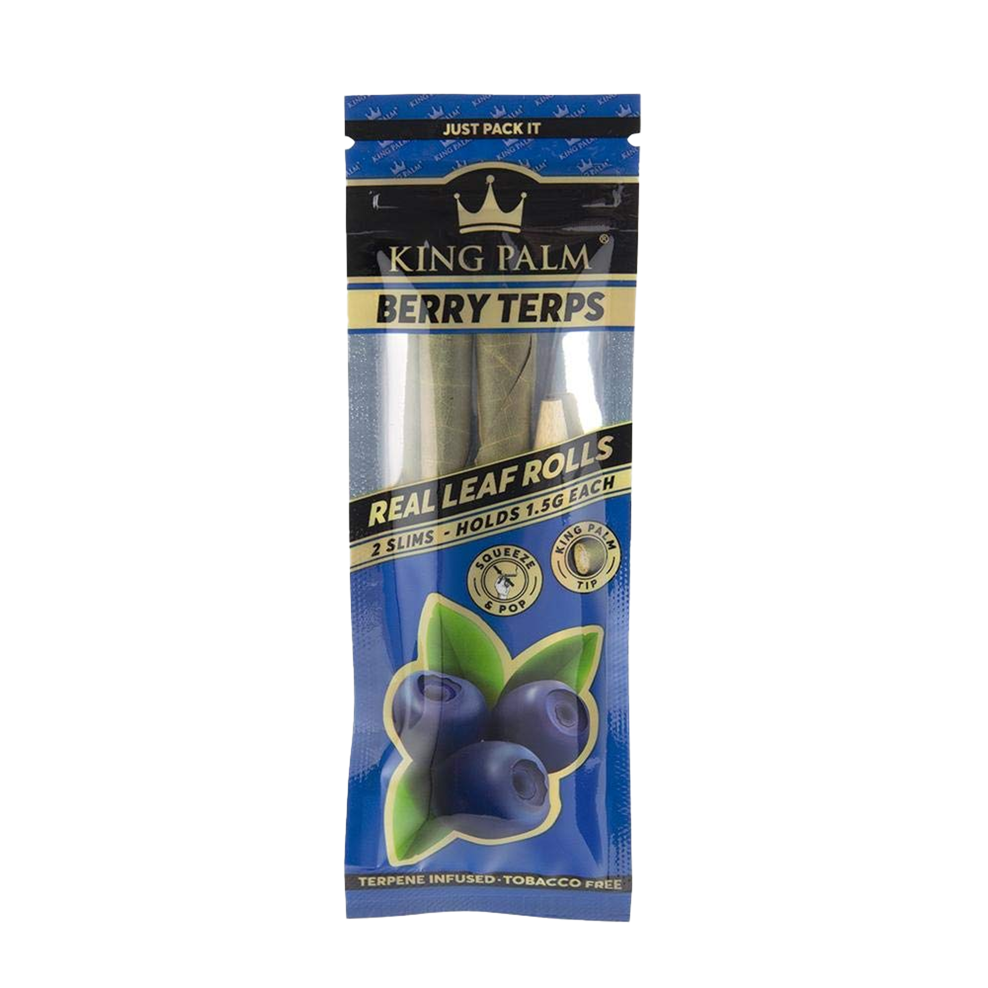 When you want a smoke sesh with flavor, look no further than Berry Terps Slim blunt cones from King Palm. Completely free of tobacco, artificial flavorings, and dyes, King Palms are made from 100% slow-burning Cordia palm leaves.