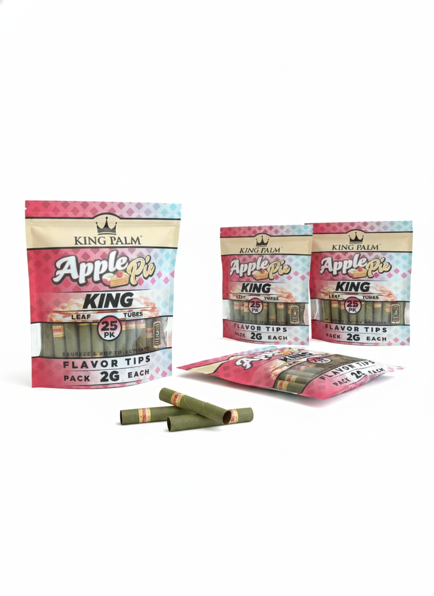 Warm dessert flavor meets King-sized convenience. Enjoy 25 perfectly pre-rolled leaf tubes with a generous 2g capacity. Just squeeze the tip to activate the sweet, comforting Apple Pie flavor instantly.