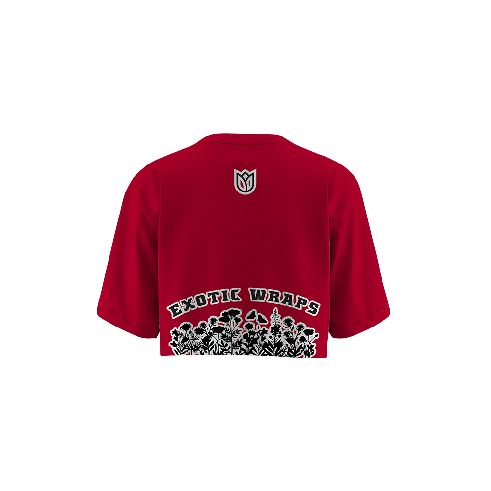 Embrace the Wild Side with the Exotic Wraps Tee – A bold statement piece featuring vibrant florals and the iconic "Exotic Wraps" design on the back. The front showcases "Wild Flower" above the signature Bluum logo, blending nature and style effortlessly.
