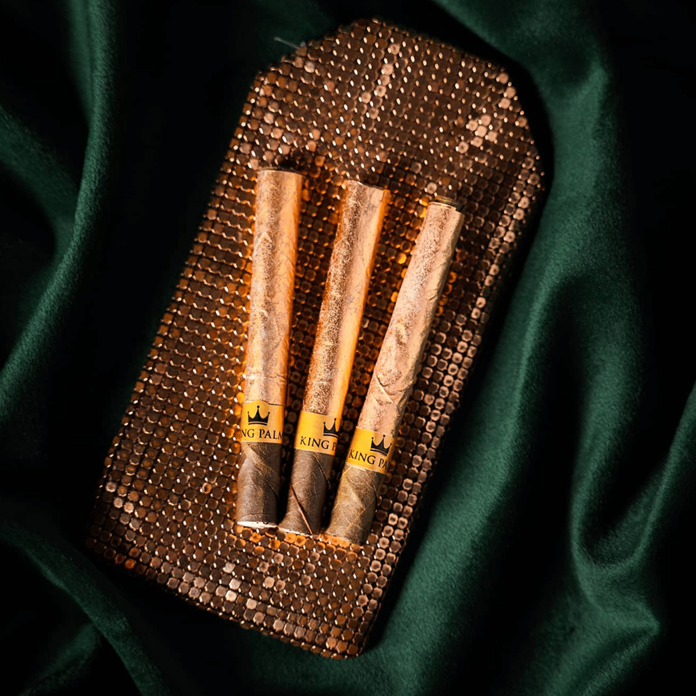 Unlike other gold rolling papers, we wrap Cordia leaves in gold instead of paper. The result is a superior experience in smoothness and an extended smoke. The reason is that these leaves naturally burn slow, and their taste is barely noticeable. Therefore, before activating the Vanilla creme flavor, you can experience more taste from your smoke. Lastly, every King Palm has been pre-rolled for you by hand, and it's held together with a paper band.