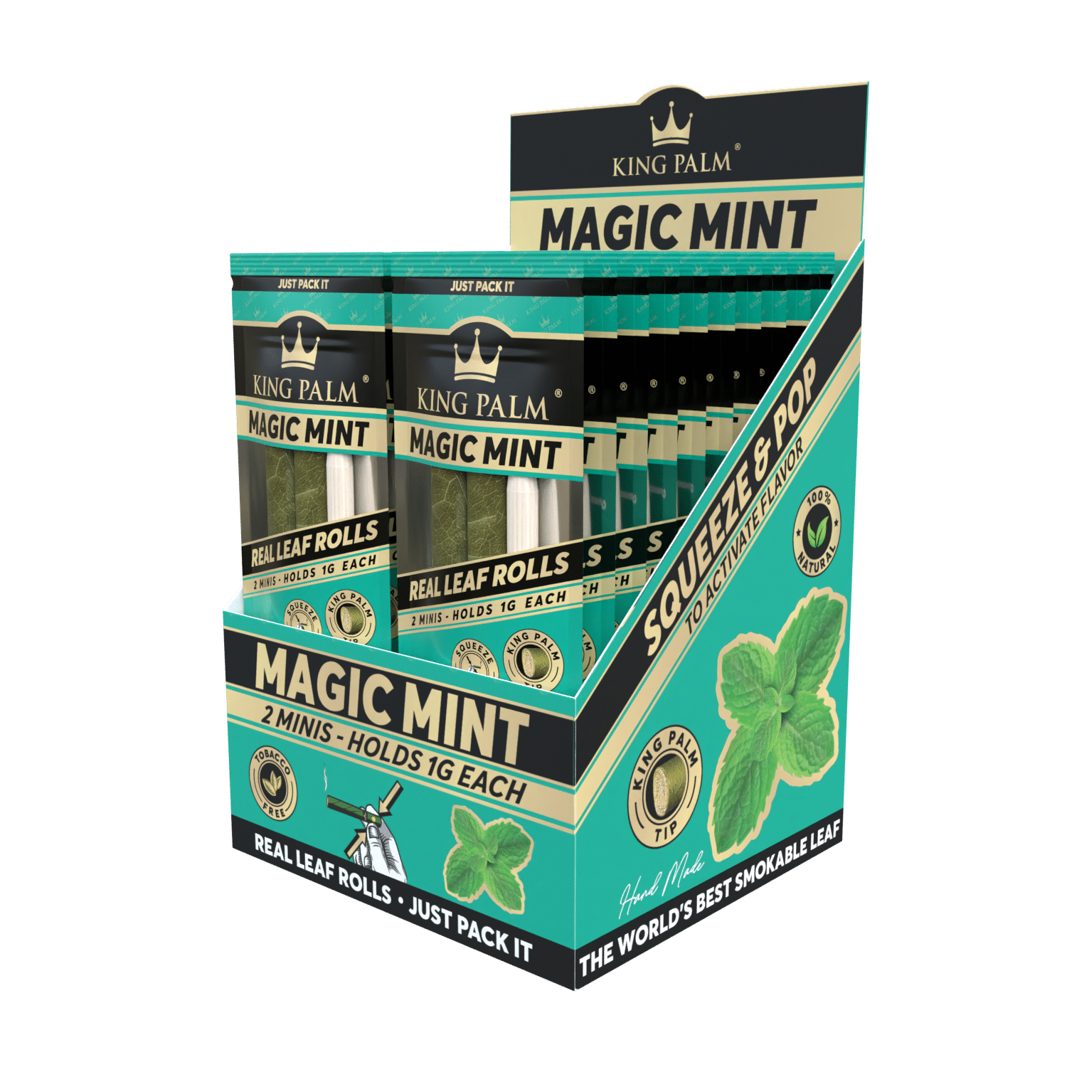 Activate the terpene-filled flavored capsules and fill your lungs with minty fresh hits. King Palm’s Magic Mint Mini Rolls contain all-natural mint terpenes that, when activated, blend beautifully with the notes. Simply squeeze the capsule inside the filter and listen for the pop! Then, you’ll start to smell the fragrant mint notes, and you know it’s time to light up.