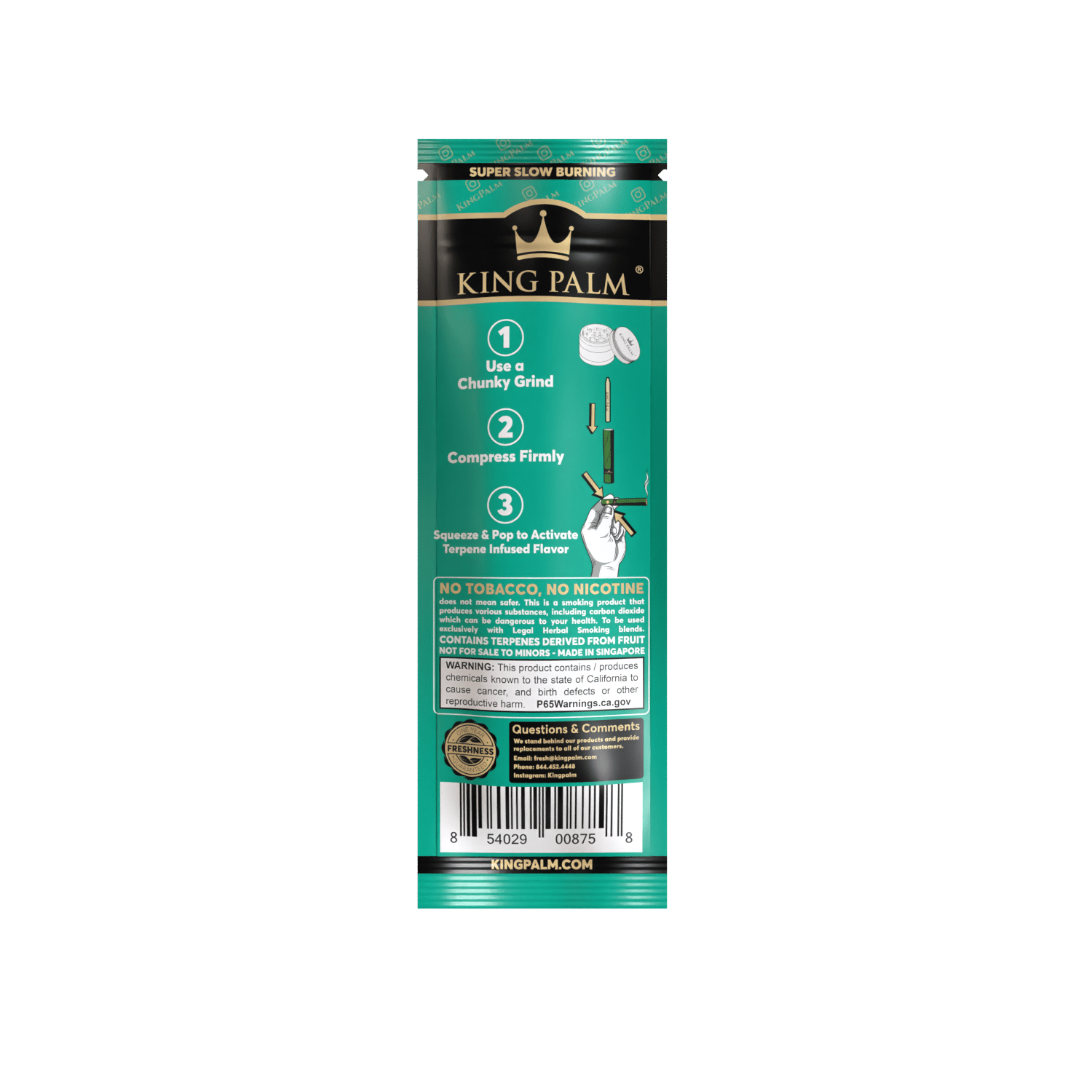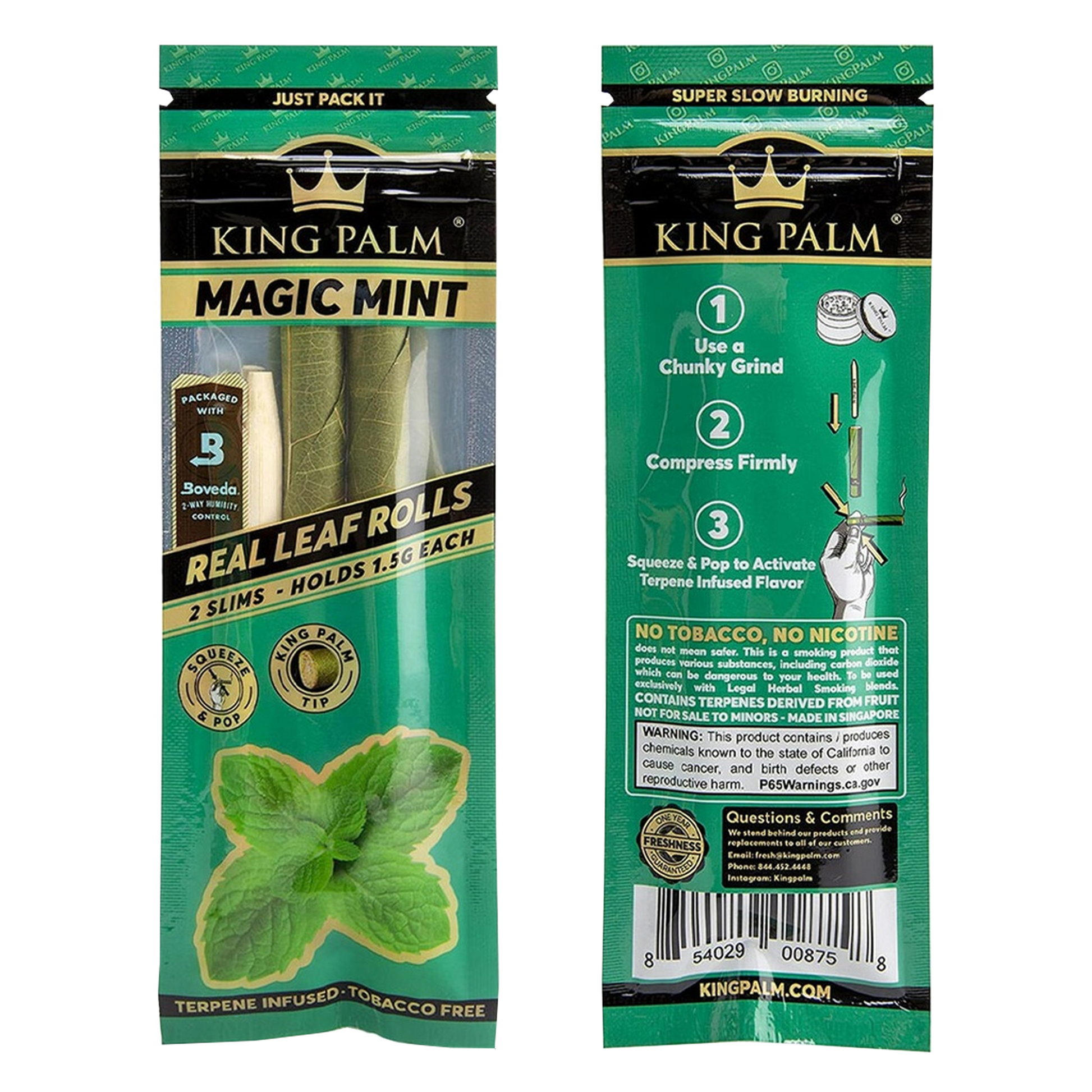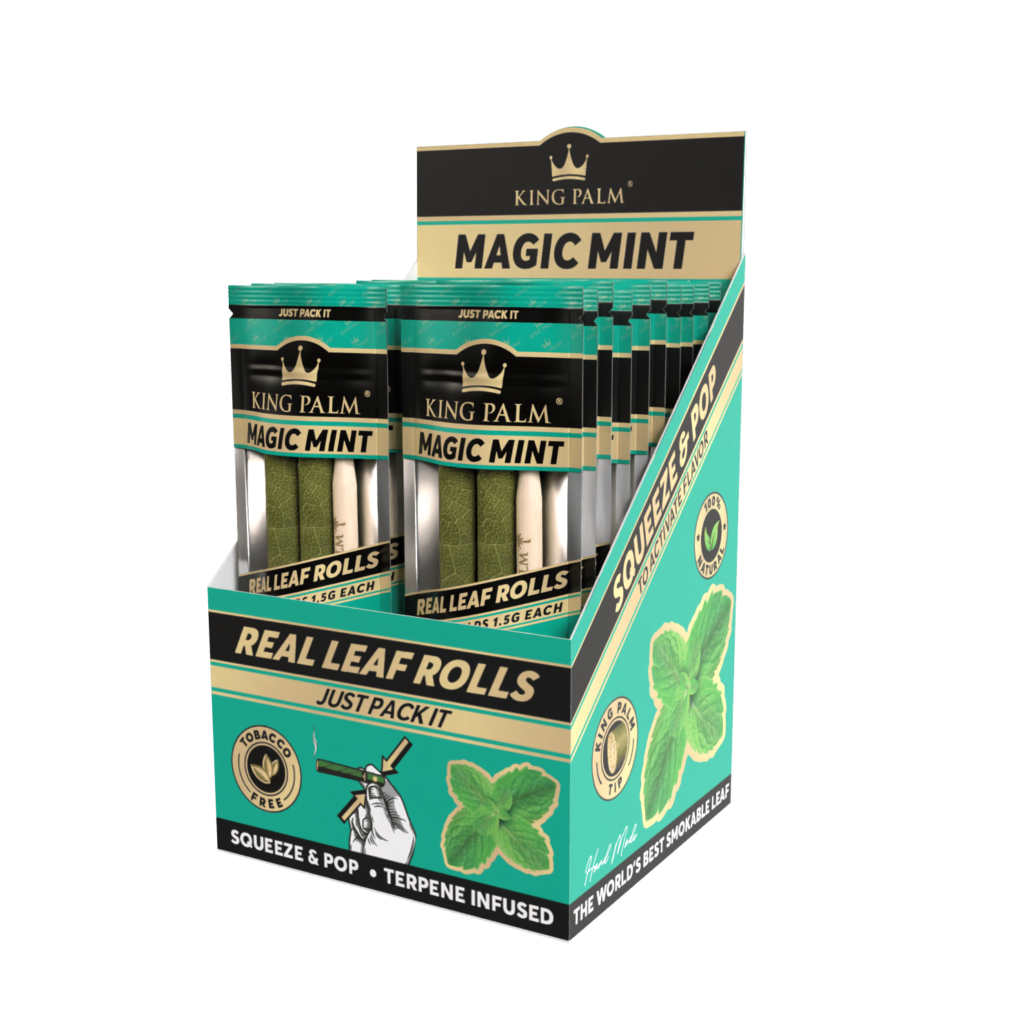 Activate the terpene-filled flavored capsules and fill your lungs with minty fresh smoke. King Palm’s Magic Mint Slim Rolls contain all-natural mint terpenes that, when activated, blend beautifully. Simply squeeze the capsule inside the filter and listen for the pop! Then, you’ll start to smell the fragrant mint notes, and you know it’s time to light up.