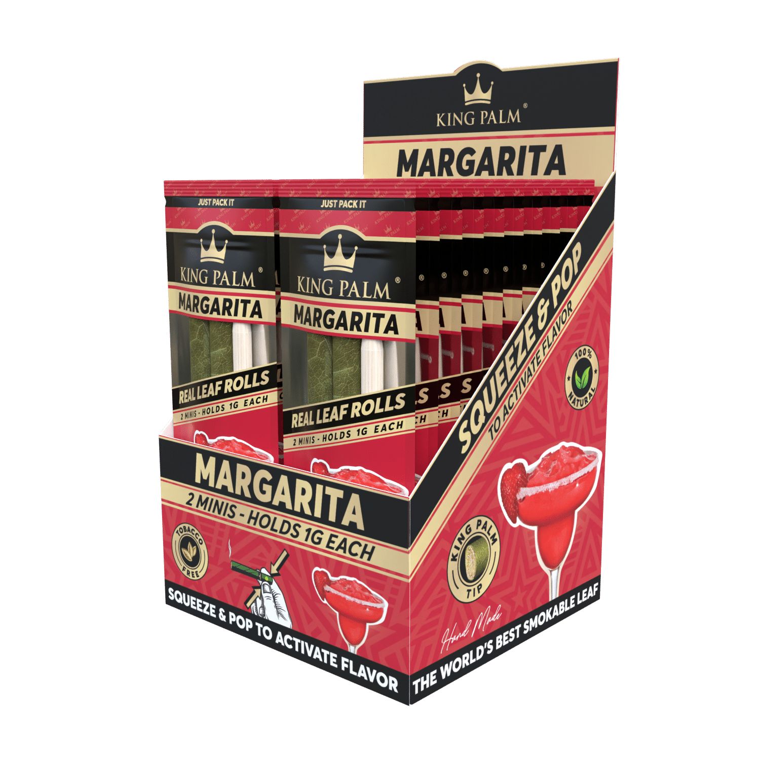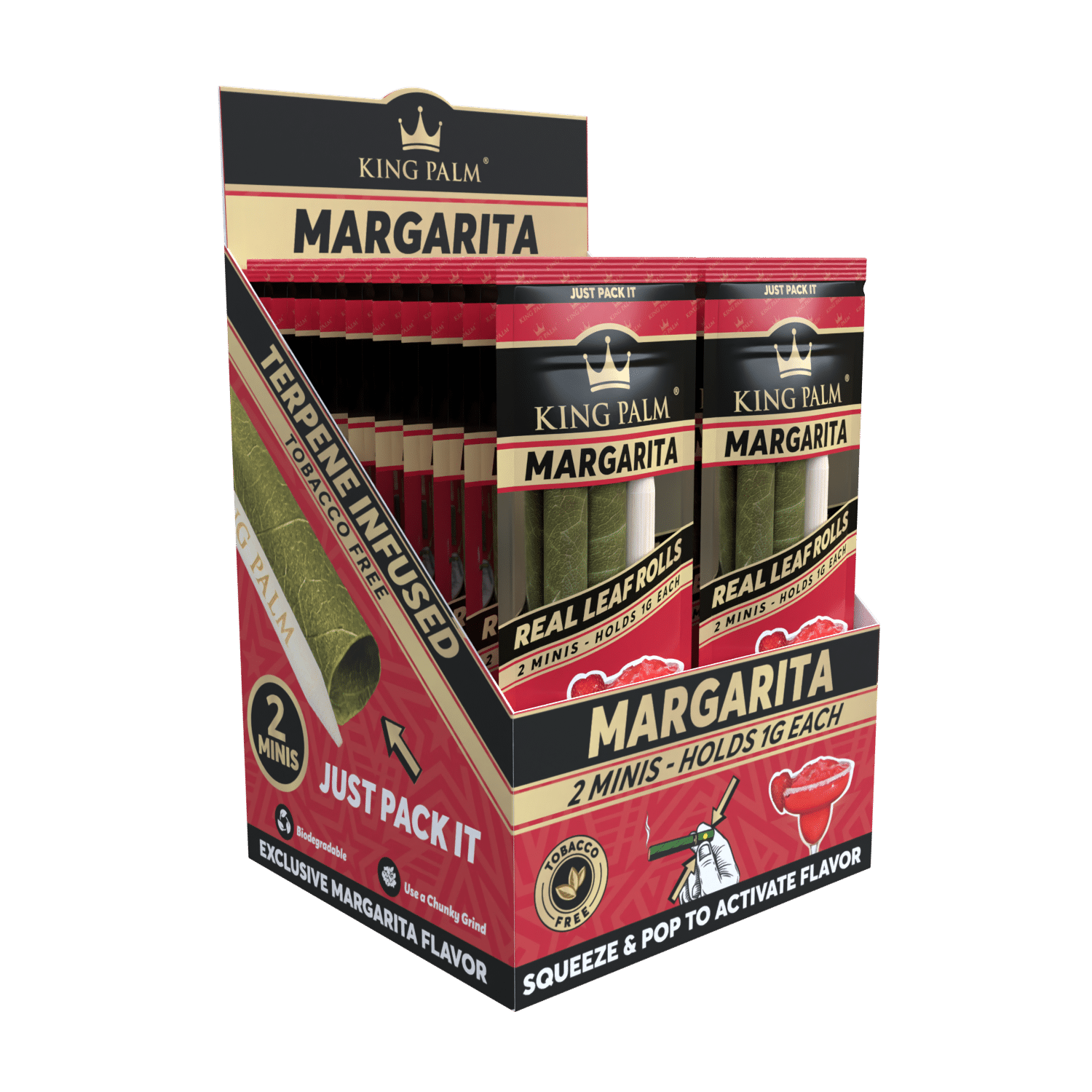 With King Palm’s Margarita Mini Rolls, it’s always time for a drink. These Mini Rolls contain fruit-derived terpene capsules that mimic the flavors of a classic margarita. Combine this tasty profile with your product. To get the flavors flowing, simply squeeze the filter until you hear a pop! Once you hear this, you’ll be able to smell the fruity flavors coming through. Now, all you have to do is smoke.