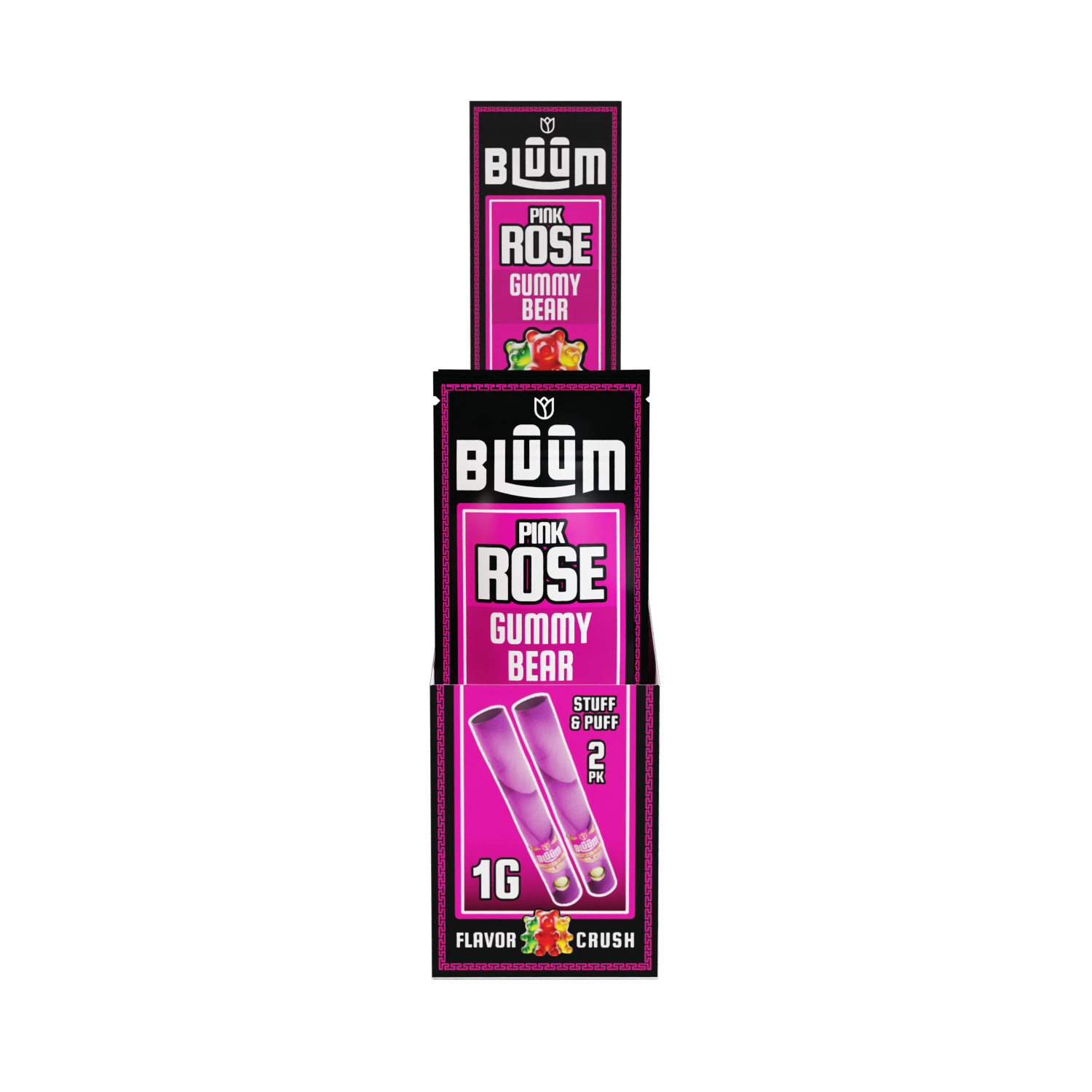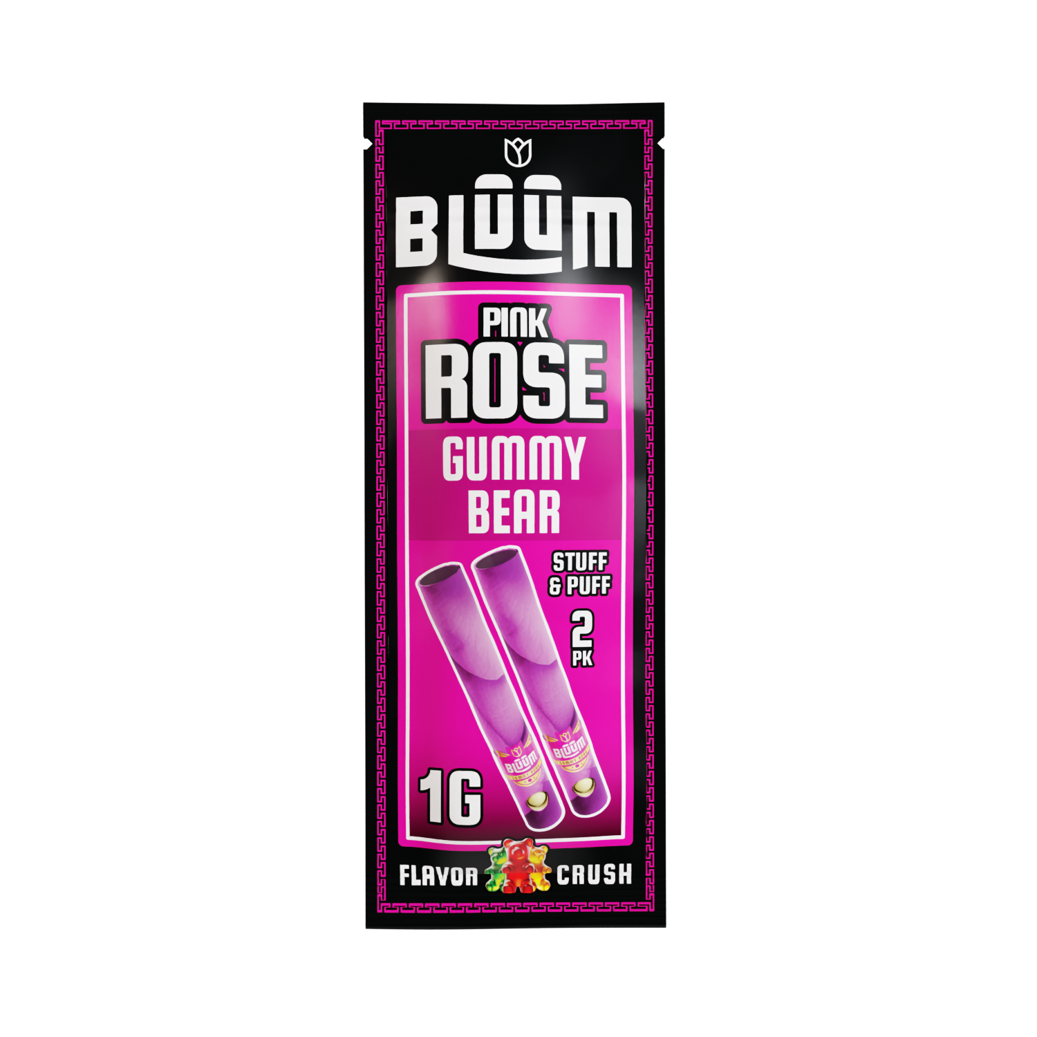Pink Rose Gummy Bear tubes offer a playful burst of fruity gummy sweetness, wrapped in soft pink rose petals for a fun and flavorful smoke.