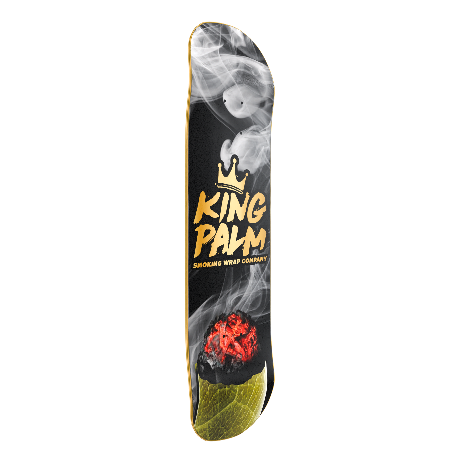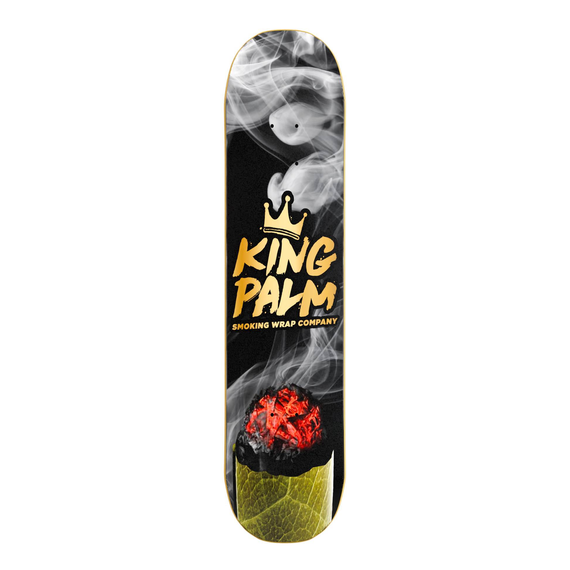 Introducing the King Palm Skateboard – perfect for collectors or those who love to ride in style. Featuring a sleek black base with a vibrant green palm roll design, complete with our iconic King Palm logo surrounded by smoke. Cruise while repping King Palm wherever you go.