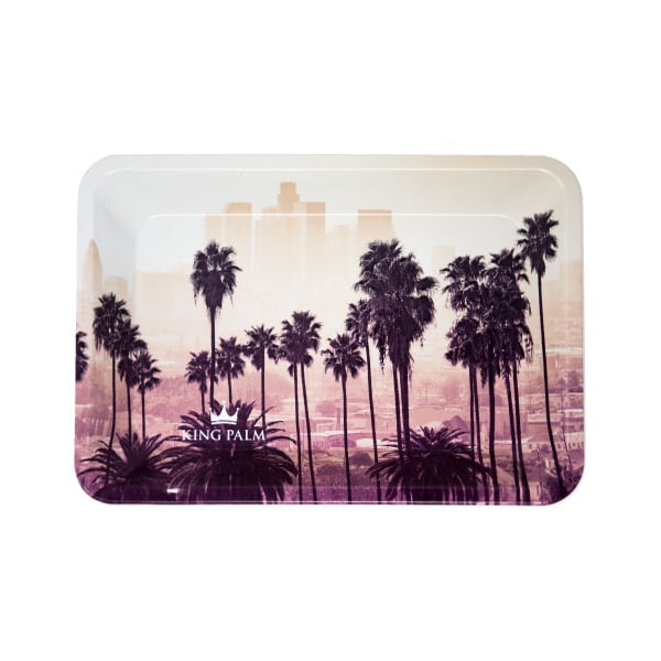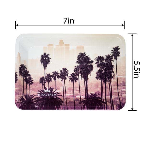 The dimensions of King Palm’s Sunset rolling tray are 7 in by 5.5 in. This medium size is perfect for holding all of your favorite smoking accessories alongside your ideal rolling papers or wraps (or King Palms of course). On this tray, you’ll have more than enough room to roll even the biggest wraps.