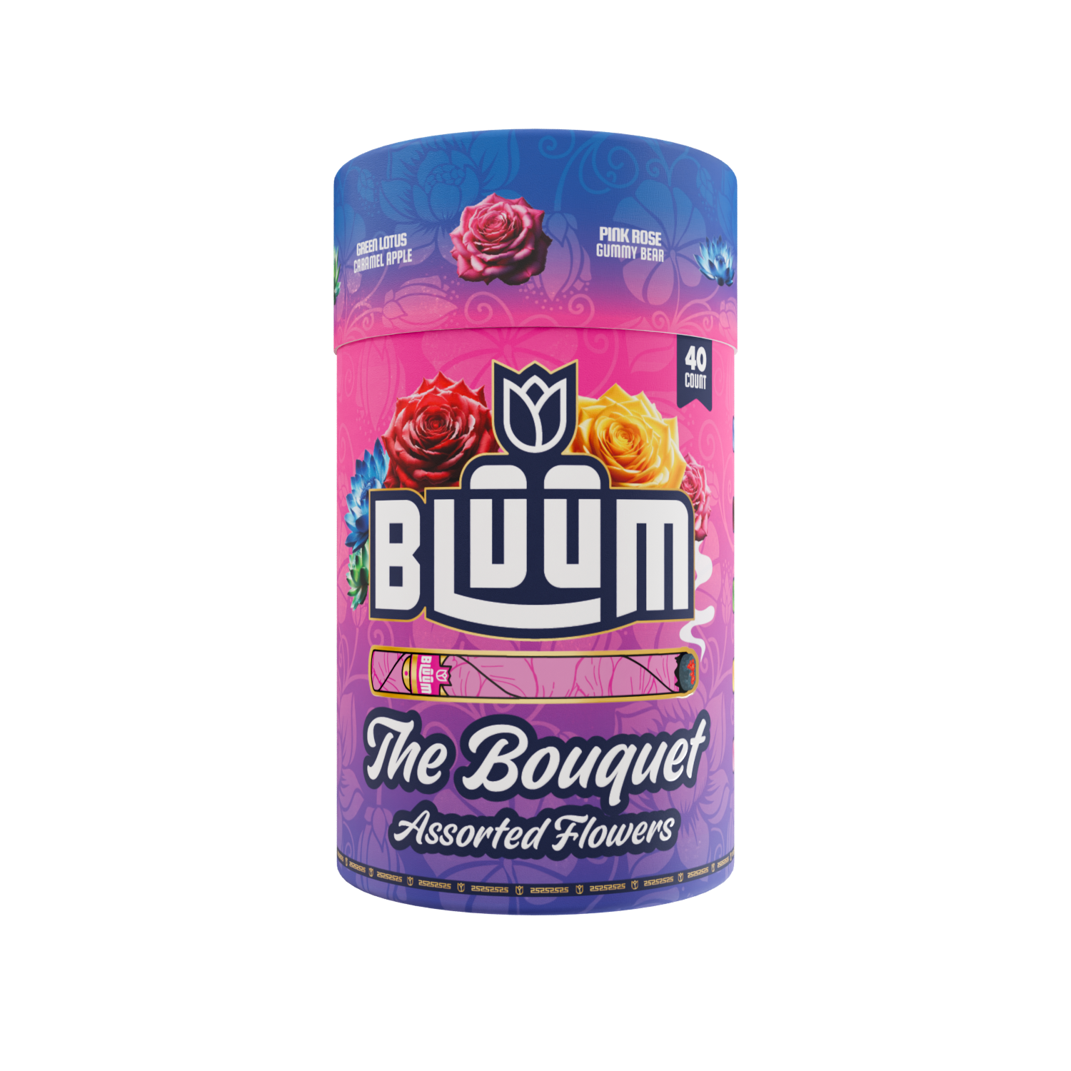 The Bouquet is a luxurious collection of 40 handcrafted flower rolls, each one designed to bring you a unique, indulgent experience. Enjoy 8 rolls in each of our decadent flavors: Gummy Bear, Banana Cream, Caramel Vanilla, Caramel Apple, and Berry Cream. This elegant assortment includes both rose and lotus flower rolls, giving you an unparalleled variety to elevate every moment.