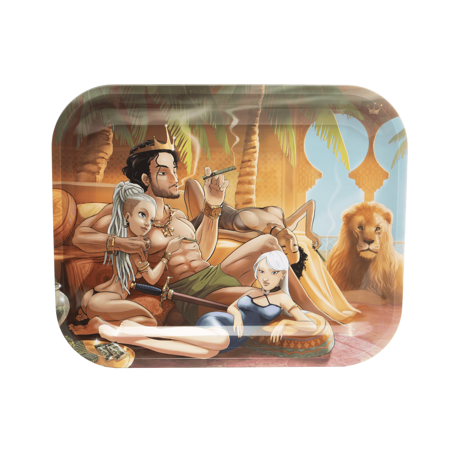 The Kingdom large metal weed rolling tray from King Palm is fit for royalty!