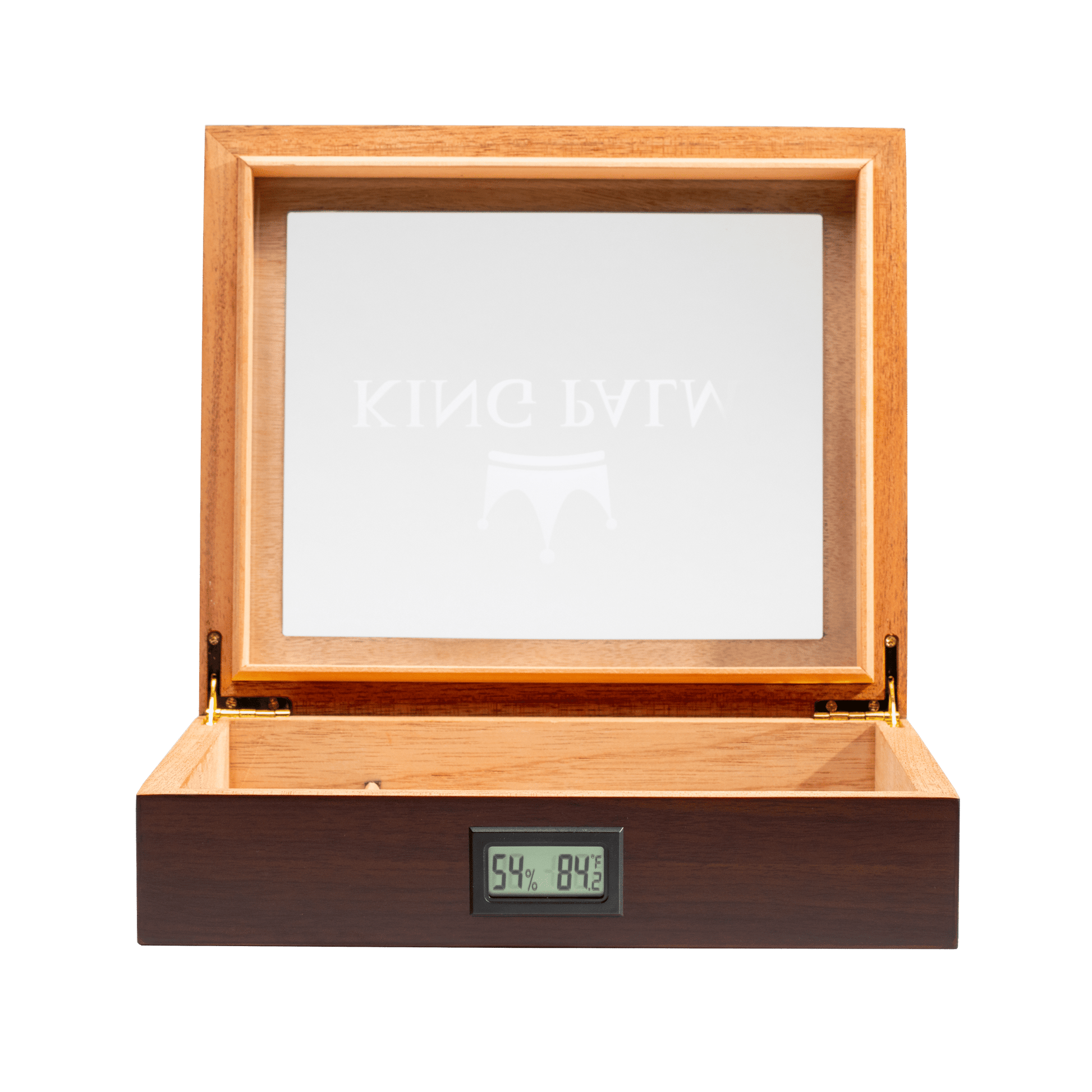 A leading smoke accessory brand for some time now, King Palm’s philosophy is quite simple. We believe in offering all-natural blunt cones that don’t cut corners or compromise on quality. So, the next logical step was creating the best way to prolong our products — the King Palm humidor box — so you can enjoy fresh wraps every time. No matter how long you’ve been holding onto them. Equipped with a digital RH reader, you can optimize your humidity levels to prolong the freshness and taste of every King Palm you purchase.